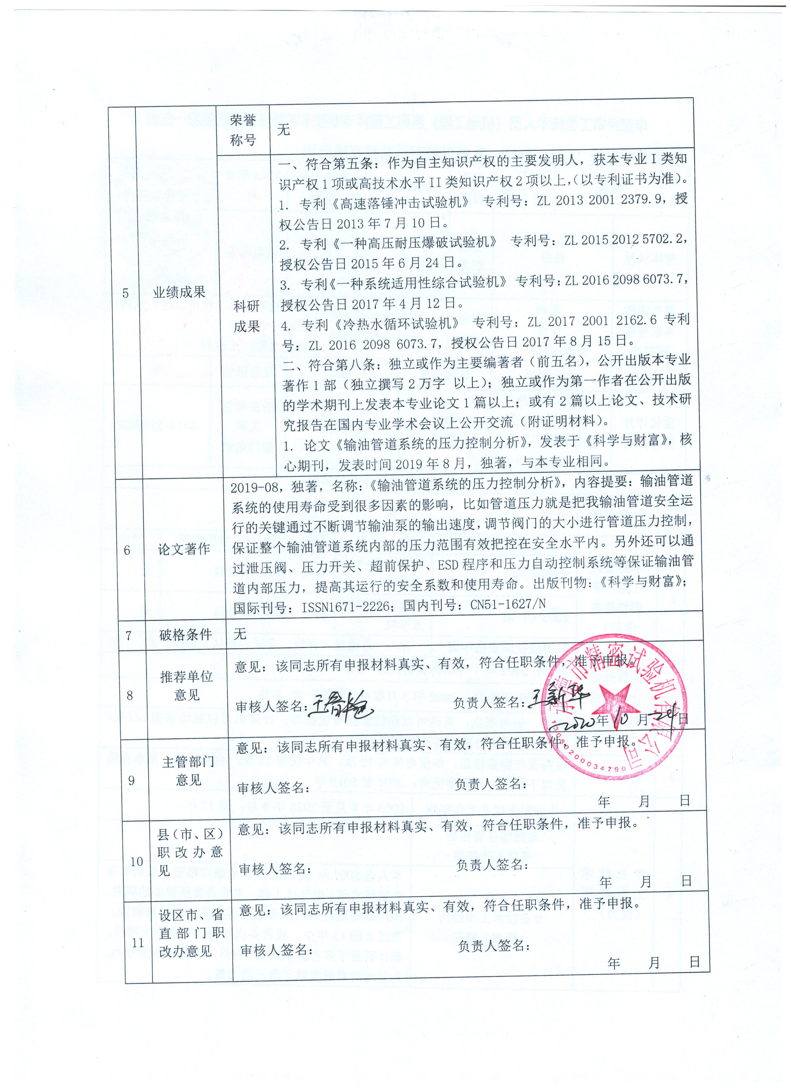 附件:申報(bào)評(píng)審工程技術(shù)人員(機(jī)電工程) 系列工程師專業(yè)技術(shù)職務(wù)任職資格情況一覽表